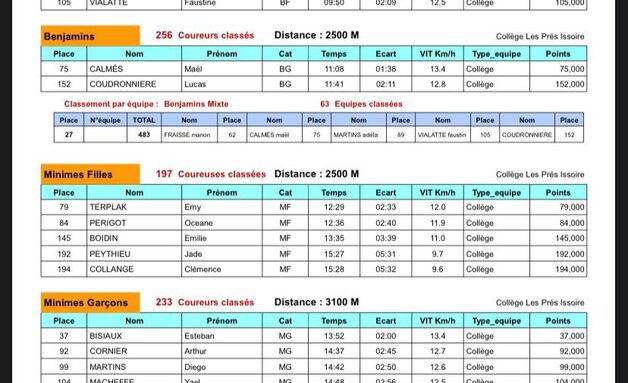 16 élèves du collège se sont qualifiés pour le cross académique à Aurillac le 7/12.